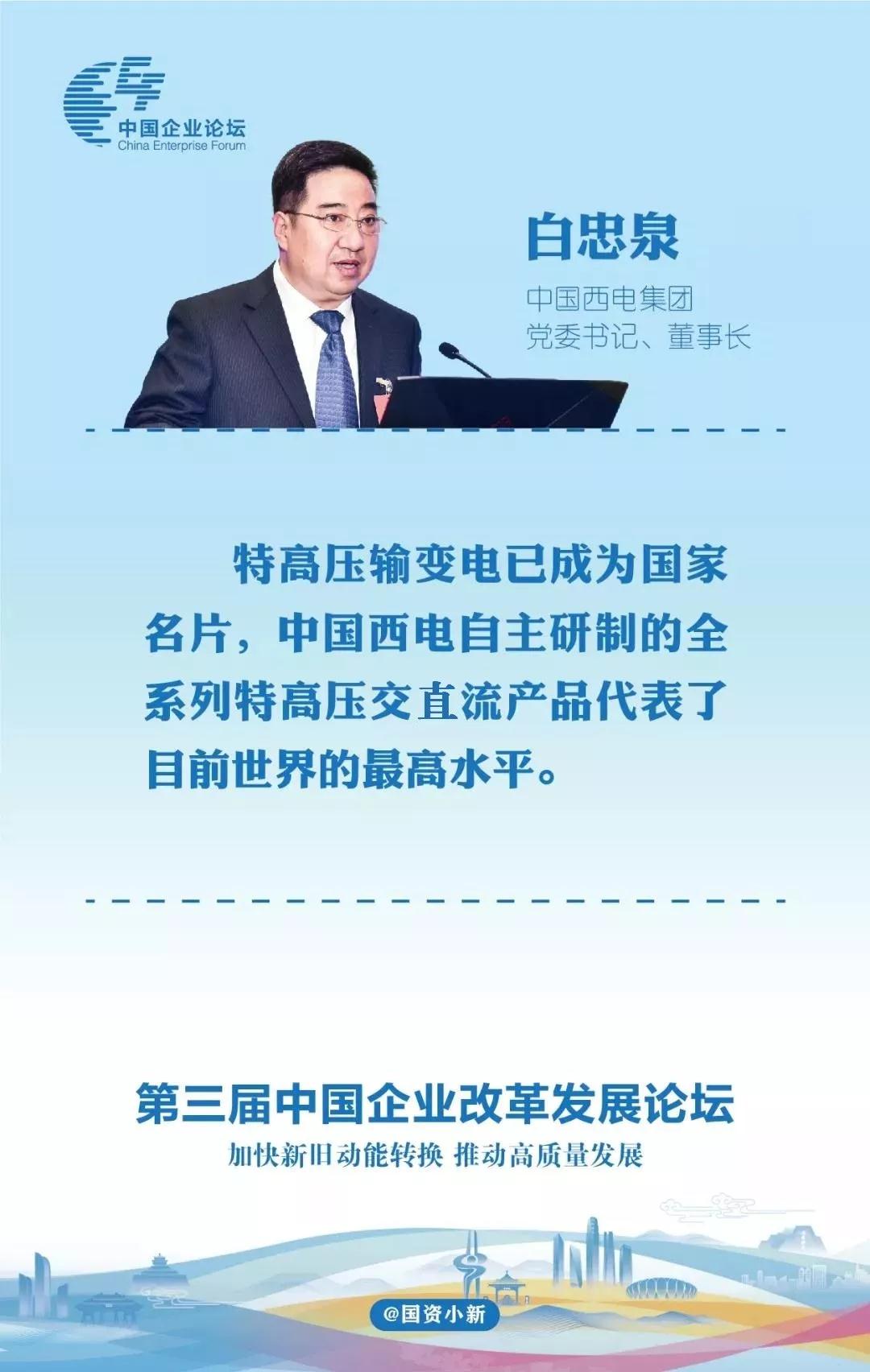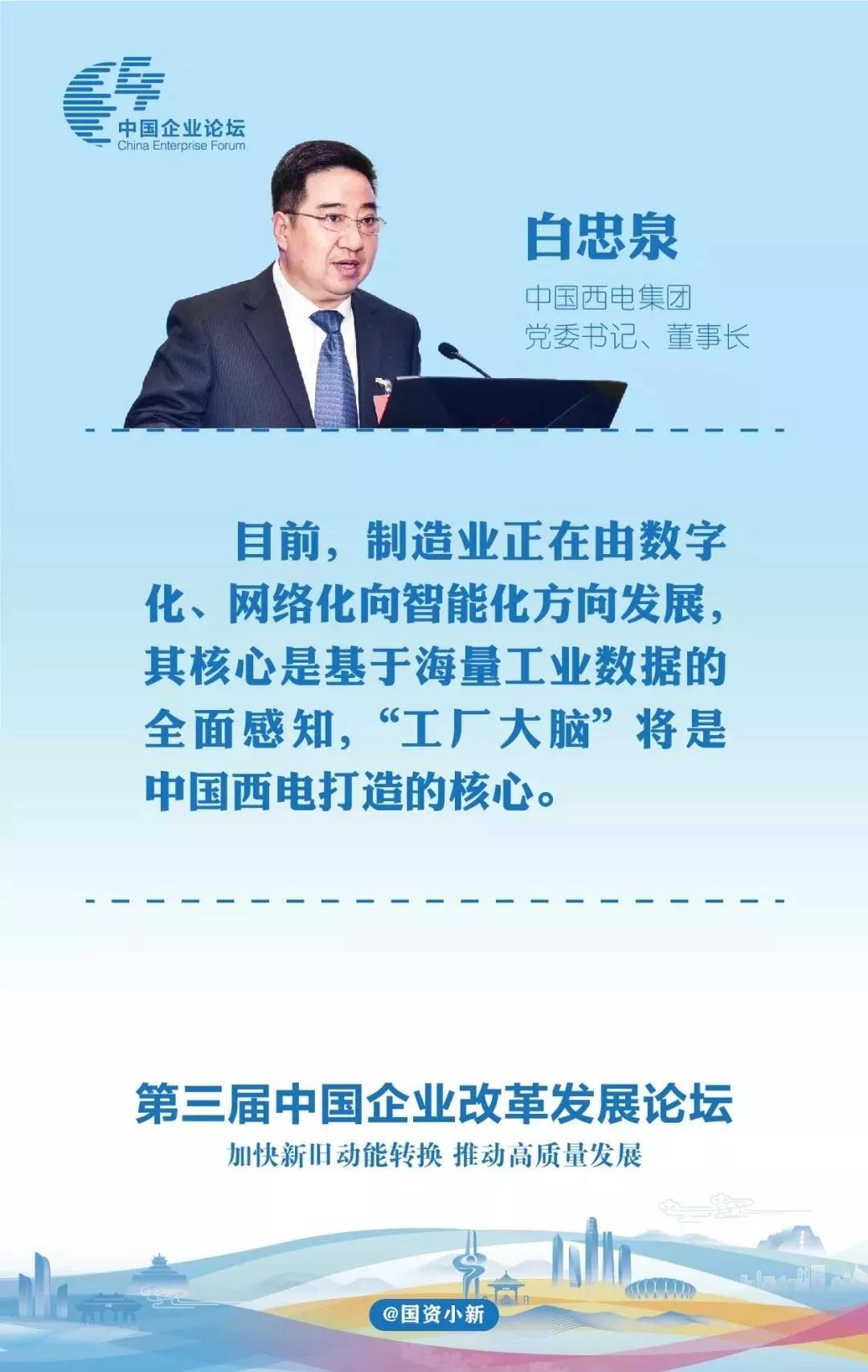 11月4日,国资小新摘取了第三届中国企业改革发展论坛16位嘉宾的32条金句,集团公司党委书记、董事长白忠泉2条金句摘录如下: